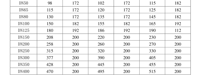 注:壓力等級2.5MPa前后連接法蘭標準為JB81-59;壓力等級4.0MPa前后連接法蘭標準為JB82-59法蘭。