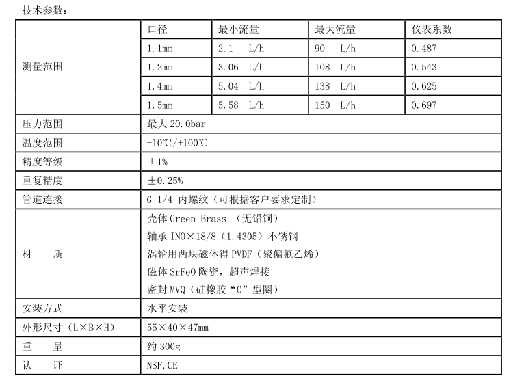 系列流量計用途十分廣泛: 可用于測量、 調(diào)節(jié)、 分配液體, 包括工業(yè)、 化學(xué)、 石油和商用咖啡機(jī)等。 當(dāng)應(yīng)用于食品衛(wèi)生工業(yè)時, 其產(chǎn)品都通過美國國家食品安全部門(NSF) 的驗(yàn)證。