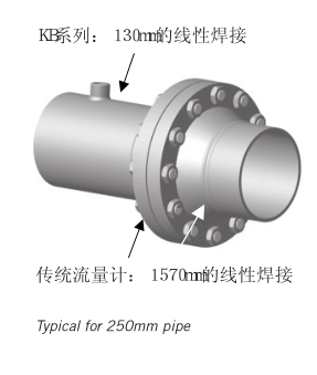 通常只需在管道上開一個直徑22mm的孔并采用130mm的線性焊接方式焊接一個螺紋套管將傳感器安裝上即可典型的是30尺寸的傳感器適用管徑可達DN1065mm無需剪切管道或焊接法蘭與整體形閥組結合安裝使系列成為安裝簡便低廉的流量計之一。