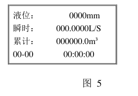 當前時間到達設置的測量起始時間后,系統將進入測量狀態,顯示測量狀態主畫面,如圖5。同時,串行口將每30秒向外輸出一次瞬時流量,以供等比例采樣器或其他儀表使用,串口輸出的瞬時流量數據格式為符合IEEE-754標準的4字節浮點數。