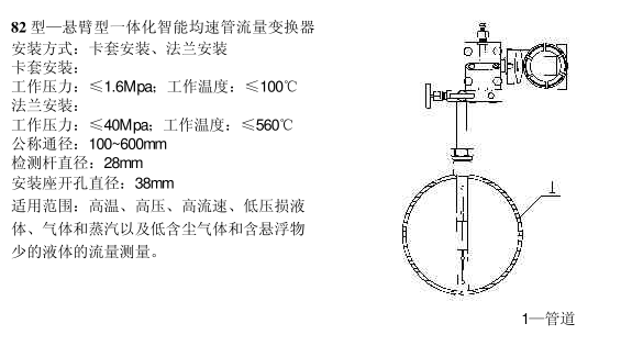 82 型懸臂型一體化智能均速管流量變換器