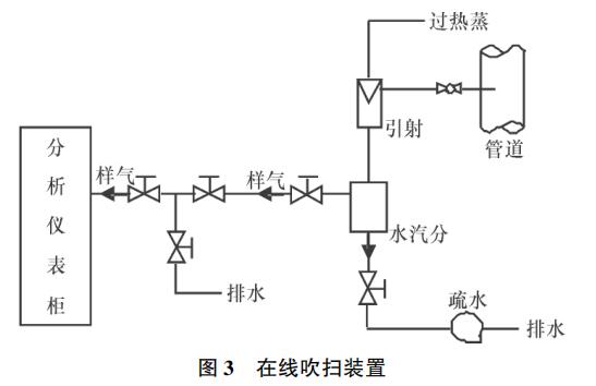 通過增設在線吹掃裝置后,維護人員通過開關相應的閥門,很方便地利用蒸汽吹掃取樣探頭及樣氣管路。