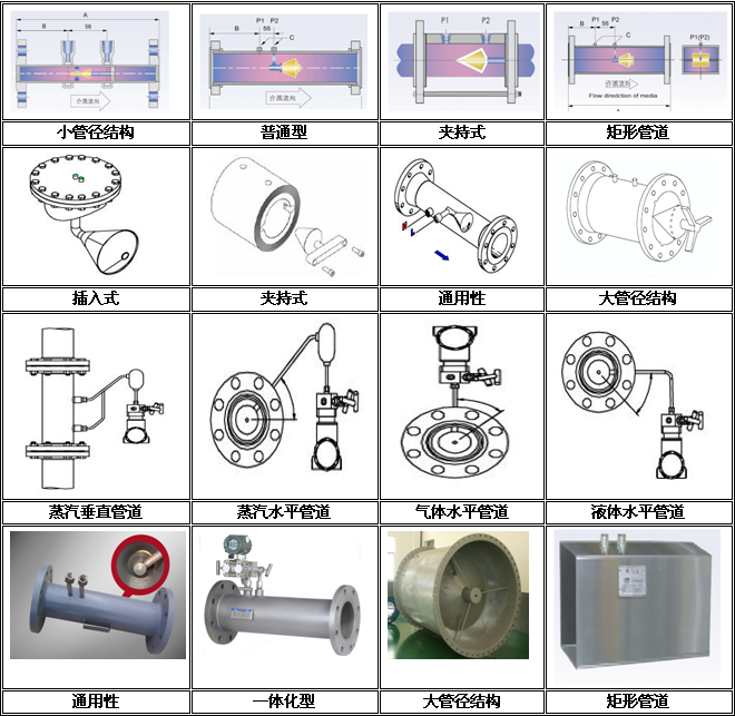 一體化V錐流量計按其結構分為:夾持式、通用型、大管徑結構、小管徑結構等結構具體形式見下表: